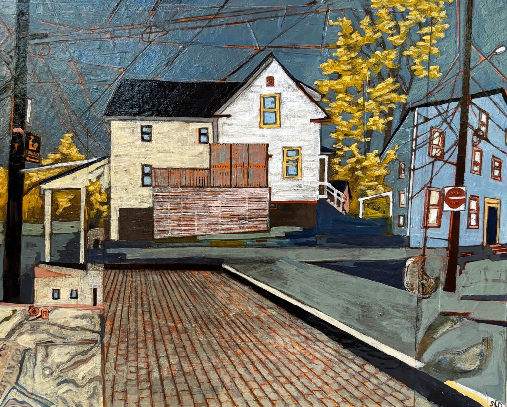 Woodbury Ave, 2018, Acrylic, collage and graphite on panelBartlett and Austin, 2018, Acrylic, collage and graphite on panelBartlett and Cass, 2018, Acrylic, collage and graphite on panelThorton and Bartlett, 2018, Acrylic, collage and graphite on panelCass and State Streets, 2018, Acrylic, collage and graphite on panelMorning Street, 2018, Acrylic, collage and graphite on panelAberden to Exeter and Beverly, 2018, Collage and graphite on birch panelSudbury and Tanner Streets, 2017, Acrylic collage and graphite on panelPortsmouth Duplex, 2017, Acrylic collage and graphite on panelMiddle Street Market, 2017, Acrylic collage and graphite on panelMcDonough Street, 2017, Acrylic collage and graphite on panelHanover Street, 2017, Acrylic collage and graphite on panelMcDonough and Greenway, 2017, Acrylic collage and graphite on panelAberdeen to Exeter, 2017, Graphite and gesso on bristol boardEnfield, Milton and Portsmouth, 2017, Graphite and gesso on bristol boardBlue House Beverly, 2017, Graphite and gesso on bristol board