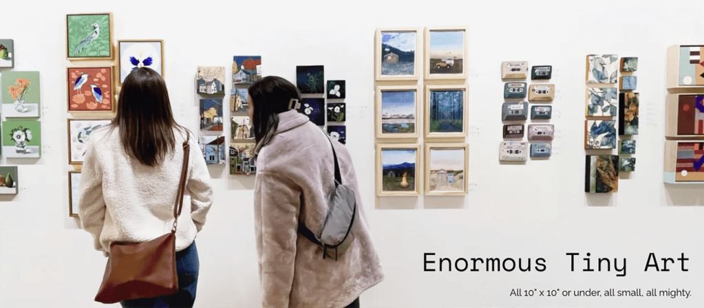 Established in 2007, The Enormous Tiny Art Show (also known as ETA) showcases artwork no larger than 10” by 10”. It features diverse artistic styles and mediums, aiming to make art collecting more accessible and foster community. We believe in the unique energy of original art and strive to make it accessible to all.”