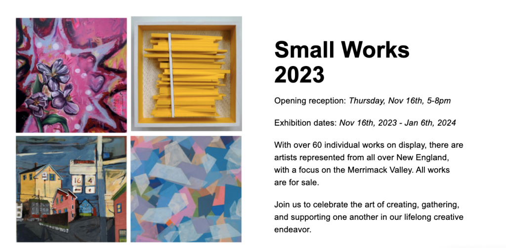 I will have 9 new works in the Enormous Tiny Art Show #39 at Nahcotta Gallery in Portsmouth NH.